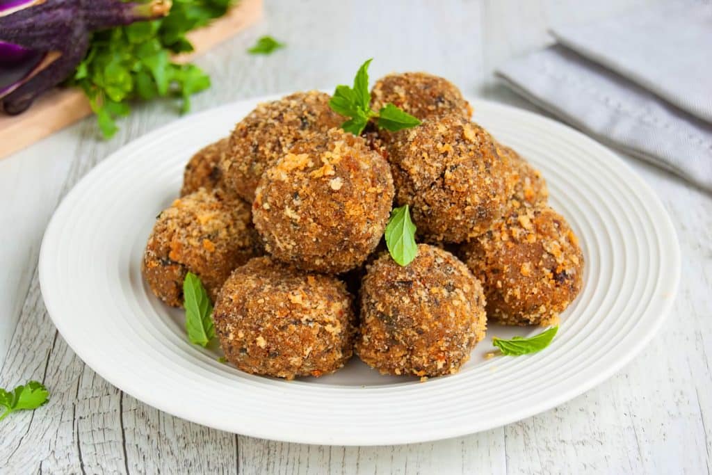 Boulettes d’aubergines et pecorino, délicieuses petites bouchées salées.