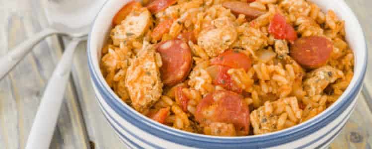– matière grasse : 30 gr beurre (Risotto) ou 2 cs Huile d’Olive (Jambalaya)