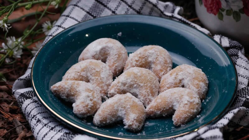 Servez vos Nüsskipfel sur un joli plat de service, accompagnés de décorations festives pour une touche finale parfaite.