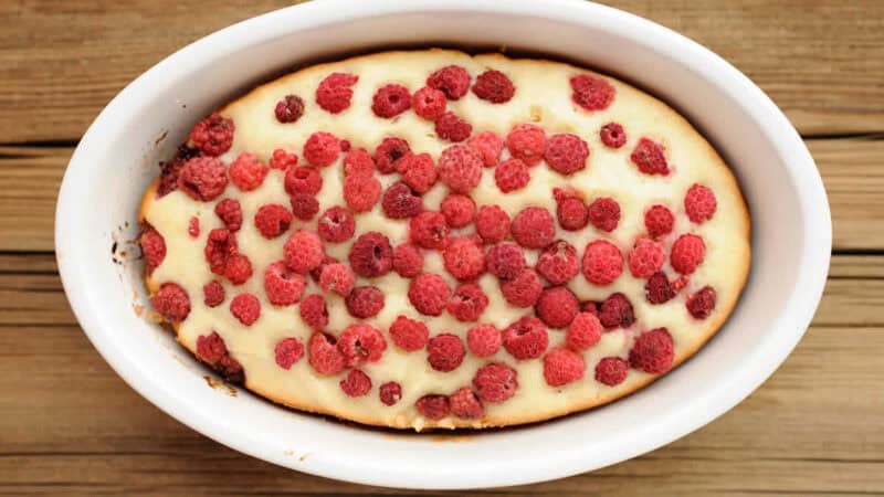 Clafoutis aux petits suisses et framboises : Une fusion exquise de fruits rouges et de crémeux