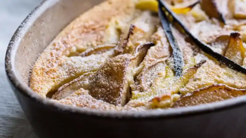 Ce dessert se situe à la croisée du flan et du gratin de fruits : sa pâte onctueuse enveloppe les morceaux de fruits, qui caramélisent légèrement à la cuisson. Le résultat est un dessert fondant, parfumé et terriblement réconfortant.