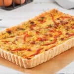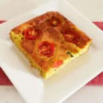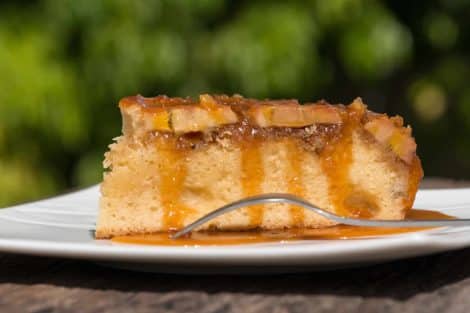 Enfournez le gâteau pour 45 à 50 minutes, ou jusqu’à ce qu’il soit légèrement doré et qu’il ait pris, tout en restant légèrement tremblotant au centre.