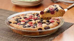 Versez votre préparation dans un moule préalablement beurré. Enfournez pour environ 40 minutes. Lorsque le dessus est bien doré et qu’un couteau ressort propre du centre, votre gâteau est prêt !