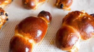 Or chaque bande ainsi obtenue sera retournée deux fois de manière à faire apparaître partiellement le remplissage. Continuez ainsi jusqu’à ce que vous ayez tourbillonné toutes les bandes précédemment réalisées. Prenez maintenant un jaune d’œuf mélangé à environ une cuillère à soupe de lait et badigeonnez toute la surface de votre pâte feuilletée avec une brosse alimentaire.