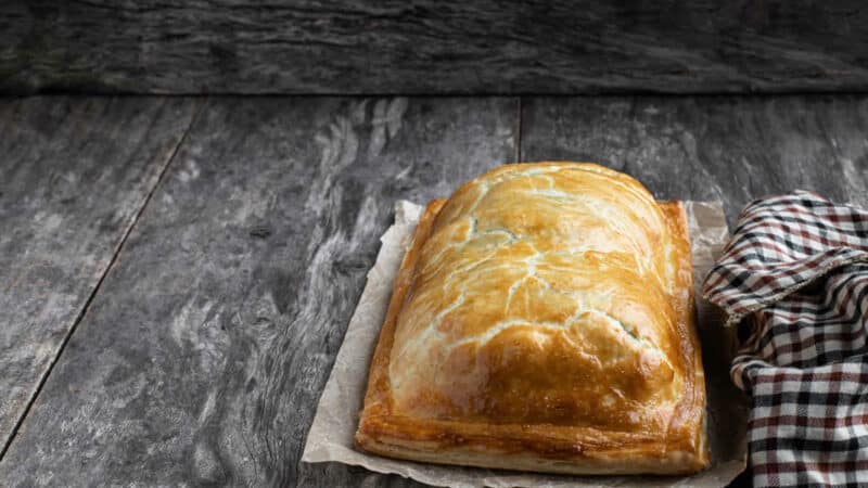 Enfin, badigeonnez la surface de la pâte avec le jaune d’œuf et cuire le feuilleté de saumon aux épinards pendant environ 40 à 45 minutes.
