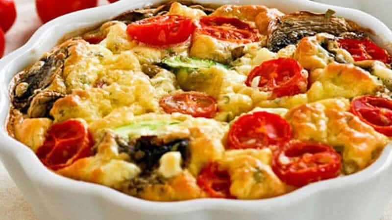 Savourez la délicatesse du Clafoutis aux courgettes, champignons et tomates cerises, une recette végétarienne innovante qui revisite le classique français. Avec des ingrédients frais et des saveurs estivales, ce plat convivial et facile à préparer est parfait pour toutes les occasions. Découvrez comment créer ce délice culinaire riche en nutriments, avec des courgettes tendres, des champignons savoureux et des tomates cerises juteuses. Accompagnez-le d’une salade croquante pour un repas équilibré et satisfaisant. Explorez d’autres recettes végétariennes uniques et inspirantes sur notre site web et transformez votre table en une fête de saveurs !