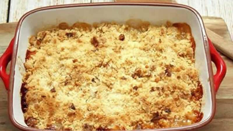 Enfournez à 180°C pendant 25 à 30 minutes ou jusqu’à ce que le crumble soit doré.