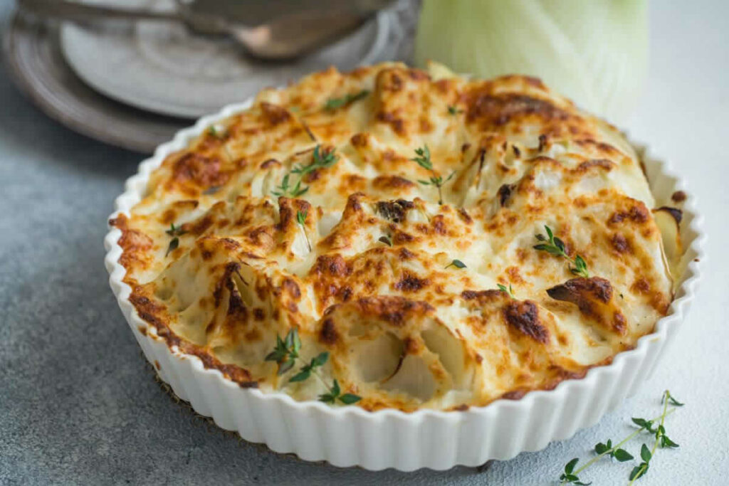 Pour un plat plus gourmand, ajoutez une couche de béchamel sur le fenouil avant d’ajouter le fromage.