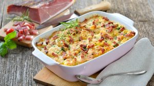 Enfournez le plat pendant 25 à 30 minutes, ou jusqu’à ce que le dessus soit bien doré et gratiné.