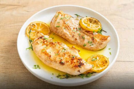 Servez chaud, garni de tranches de citron et de persil frais.
