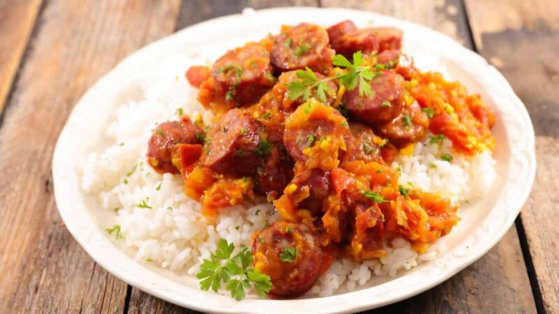 La recherche du « Rougail saucisse » parfait s’arrête ici ! Notre recette, héritée des meilleures traditions de La Réunion, promet une explosion de saveurs inégalées. Les saucisses épicées, mijotées dans une sauce tomate délicieusement assaisonnée, créent un mélange parfait pour les amateurs de cuisine créole. Si vous aspirez à un plat authentique qui rappelle le charme et la chaleur de l’Océan Indien, notre Rougail saucisse est votre choix idéal. Accompagné de riz blanc, c’est le summum de l’exotisme dans votre assiette. Mettez en avant votre passion pour la cuisine réunionnaise et découvrez pourquoi ce plat est adoré à travers le monde.