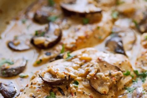 Ensuite verser la préparation sur les blancs de poulet et cuire pendant 5 minutes.