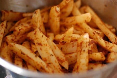 Éplucher et épépiner les pommes puis les couper en cubes, ensuite mettre dans un saladier et le jus du citron et mélanger.