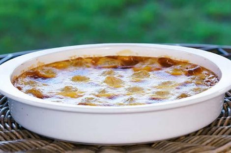 Enfin, verser dans un plat à gratin les pommes caramélisé puis les recouvrir de la pâte à crumble.