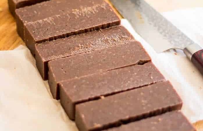 étaler la préparation d’une épaisseur de 2 cm découper des rectangle puis les faire reposer au congélateur 10 min et enfin les mettre au frigo 10 min