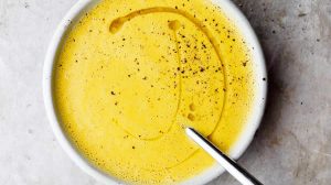 A la sonnerie, retirer le potiron puis laisser refroidir et vider le bol.