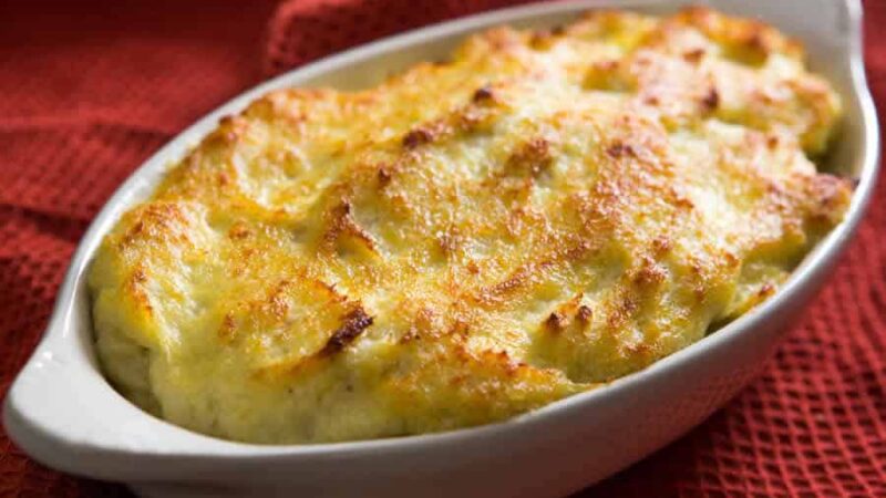 Soit mélanger les harengs à la purée thermomix : ajouter crème fraîche, (jus de citron), gruyère, poivre avec le fouet : 30 sec vit 3. Ou si vous avez fait la purée à la cocotte : presser la purée avec le lait réservé, ajouter le beurre et continuer à presser (vous pouvez laisser un peu de morceaux.) Ajouter gruyère râpé, crème fraîche, le hareng réservé, (jus de citron) puis mélanger bien le tout.