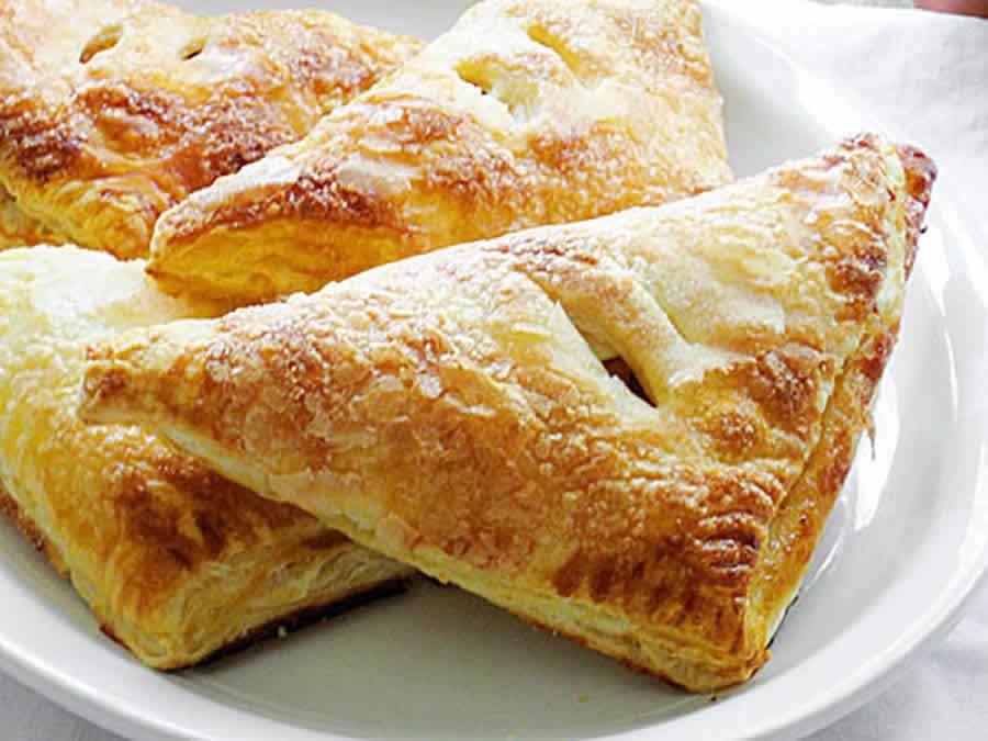 Veiller à ne pas trop garnir les chaussons afin de pouvoir les fermer hermétiquement en humectant les bords et en soudant avec les dents d’une fourchette.