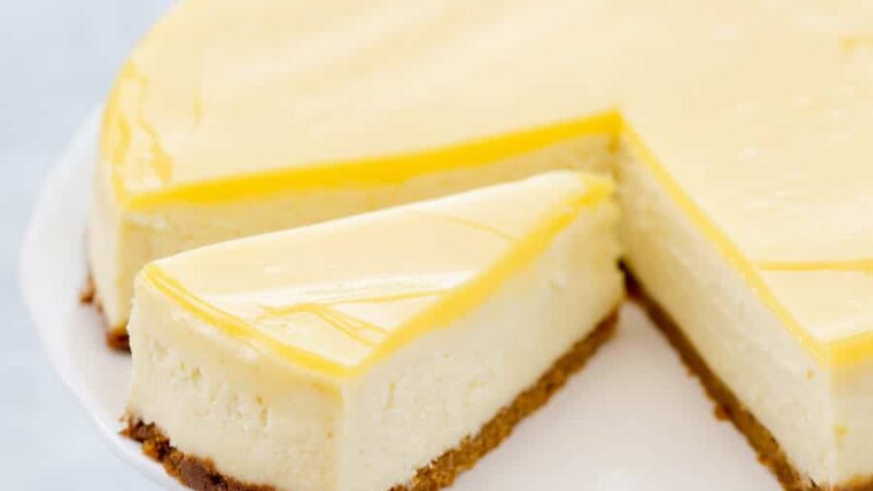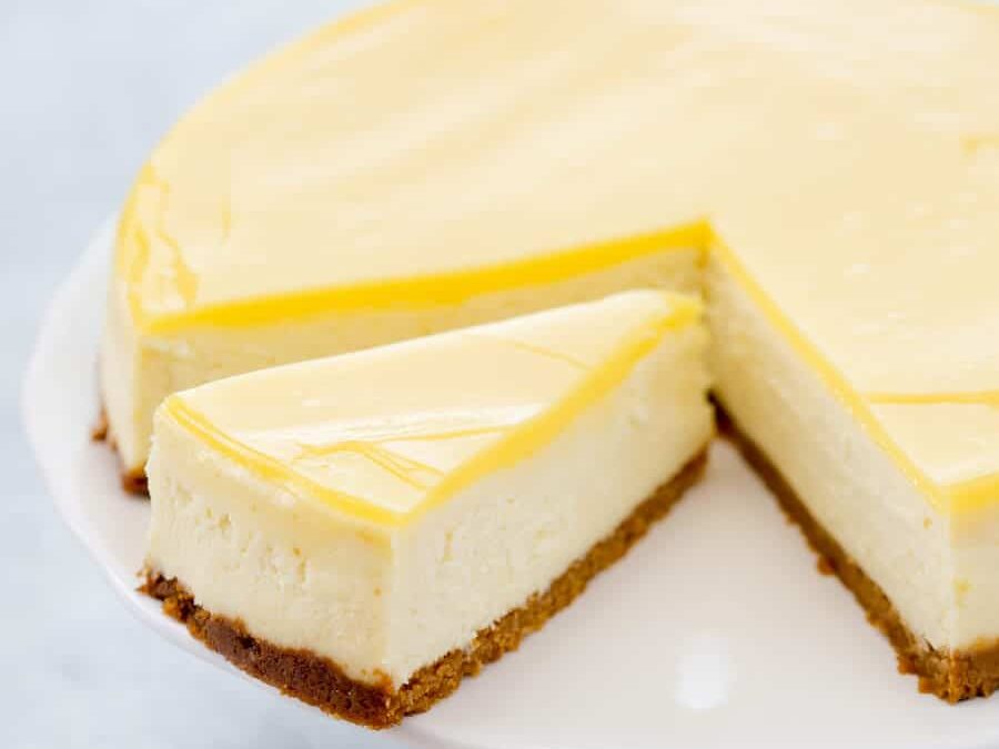 - Une fois le cheesecake totalement refroidi, verser le lemon curd sur le dessus.