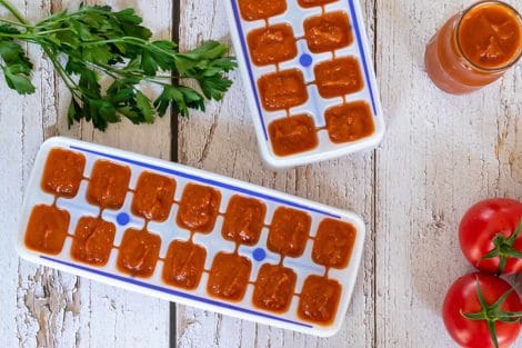 Remplir des bac à glaçon de cette préparation et mettre à congeler pendant 4 heures au moins ainsi que les écorces creusées.