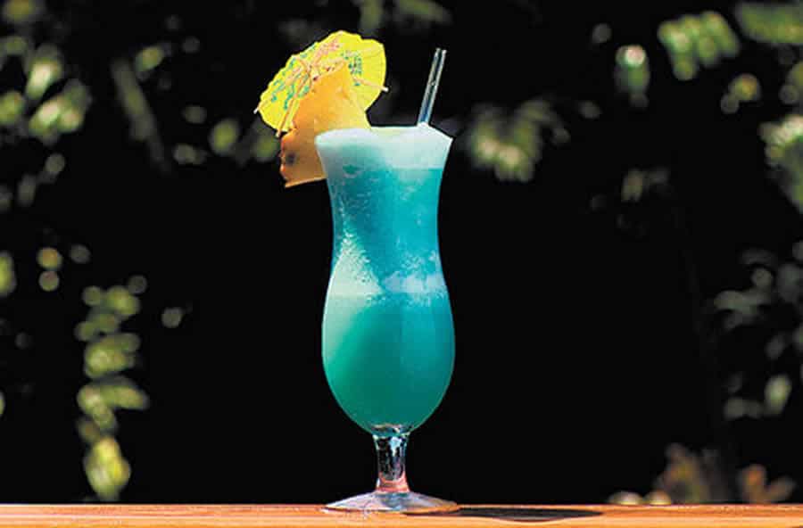 Blue Hawaii est un cocktail de la cuisine hawaïenne / culture Tiki, à base de rhum, de curaçao bleu, de lait de coco, et de jus d’ananas.