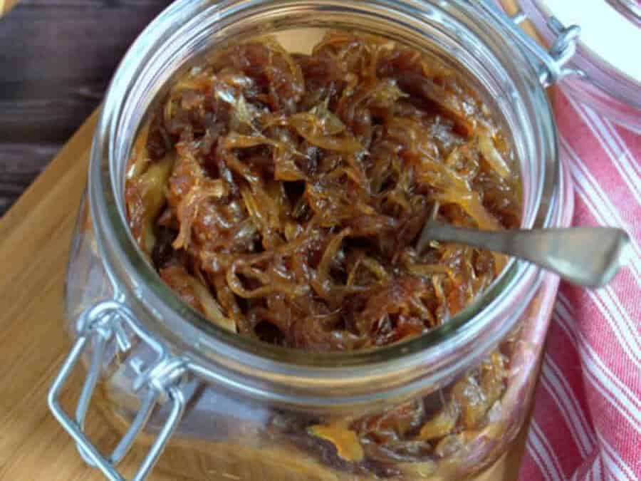 Versez le confit d’oignons bouillant dans un pot et laisser refroidir.