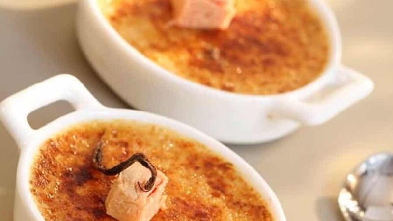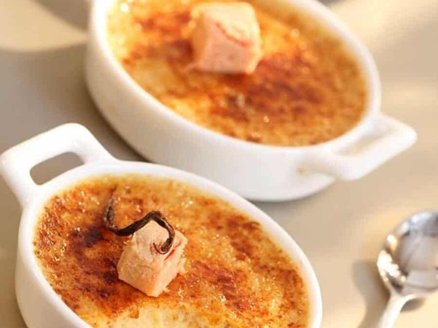 Une version sophistiquée et salée de la célèbre crème brûlée ! Cette entrée raffinée marie l’onctuosité du foie gras à la texture soyeuse d’une crème, sublimée par une croûte craquante de cassonade caramélisée. Un dessert d’exception qui impressionnera vos invités lors de vos repas les plus élégants !