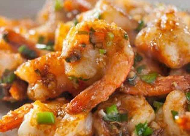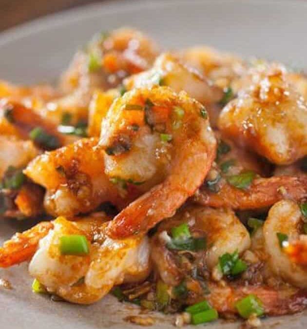 4- Faire chauffer le reste de l’huile dans un wok, et faire sauter les crevettes quelques minutes, jusqu’à ce qu’elles soient bien dorées et que la sauce épaississe et caramélise légèrement.