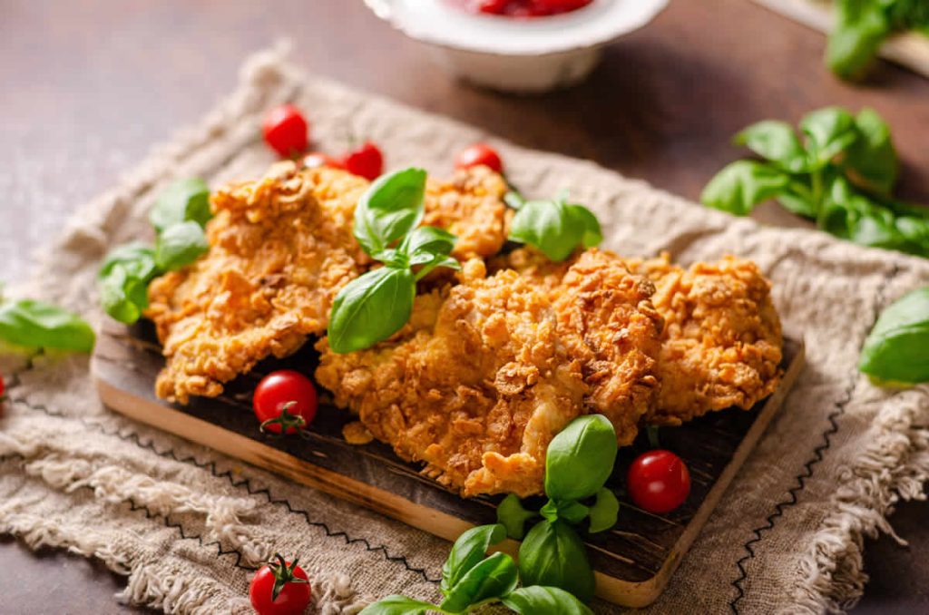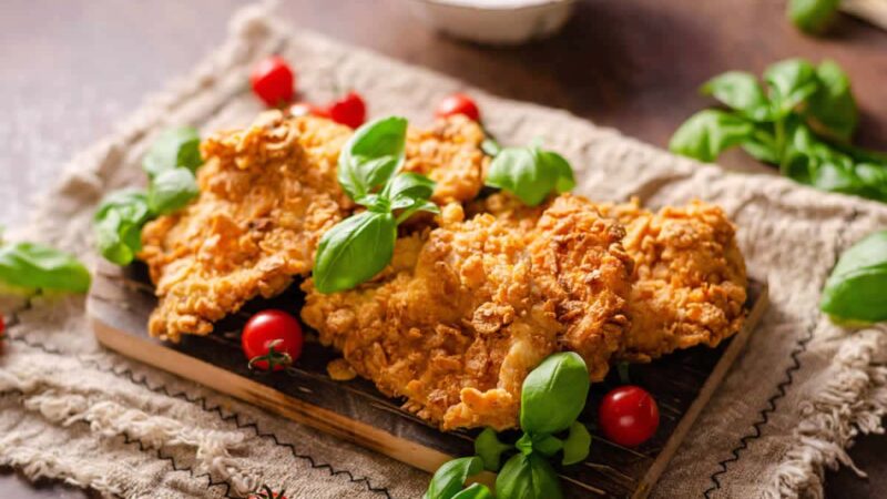 Pour une chapelure encore plus croustillante, tremper une seconde fois dans les œufs et dans les corn flakes.