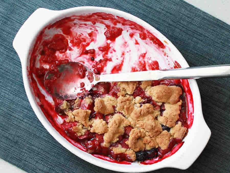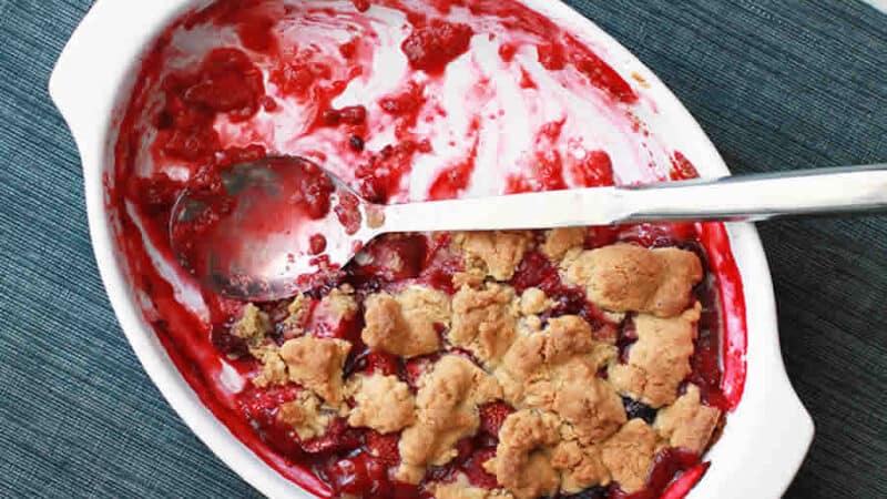 Émietter la pâte à crumble sur les fruits rouges.