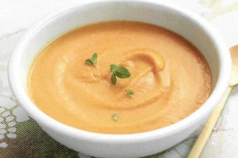 A la sonnerie, vider l’eau du bol et remettre la patate douce dans le bol de votre thermomix, mixer pendant 6 secondes à la vitesse 6. Racler les parois du bol avec la spatule.