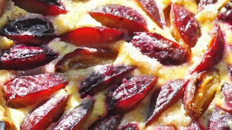 A la sonnerie, verser la préparation sur les prunes et cuire votre flan aux prunes au four pendant 30 minutes.