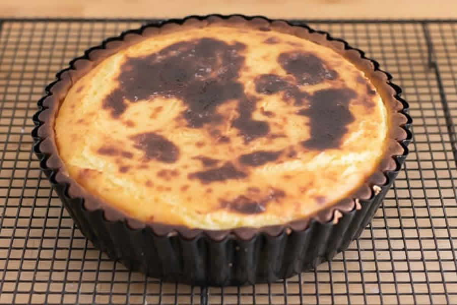 Foncer le moule préalablement beurré et fariné avec la pâte, piquer le fond et les bords avec les dents d’une fourchette.