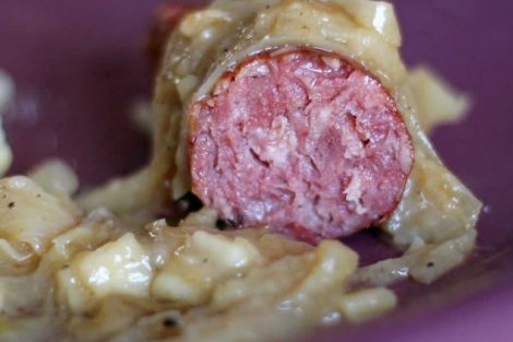 Une fois refroidi, couper en deux dans la longueur à l’aide d’un grand couteau.