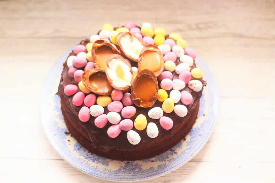 Mettre les petits oeufs en chocolat sur le gâteau.