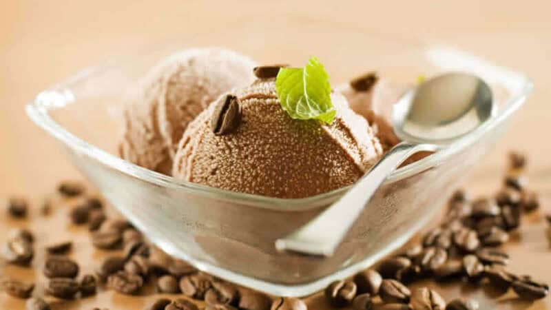 Pour une glace plus corsée, pulvérisez 2 cuillerées à soupe de café en grains en mixant pendant 20 secondes à la vitesse 9 et l’ajouter au café dans la première étape.
