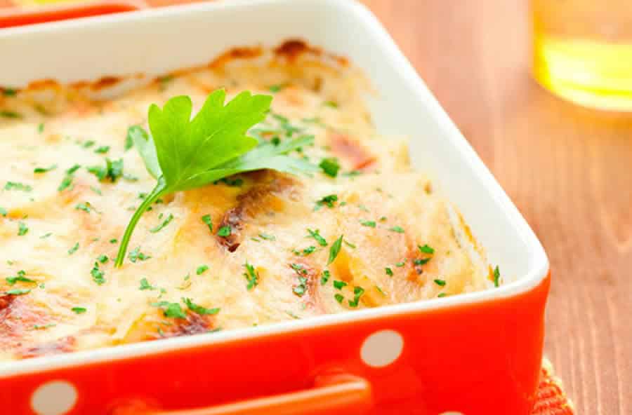 Verser le tous dans un plat à gratin, saupoudrer un peu de gruyère et laisser cuire au four à 180°C jusqu’à ce le fromage soit bien gratiné.