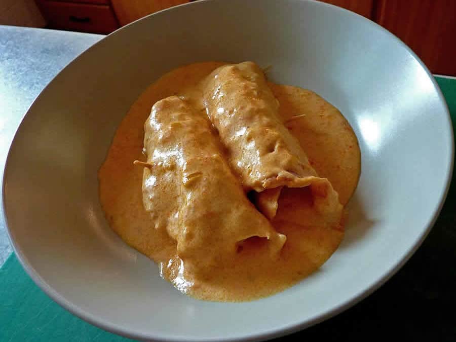 Pendant ce temps rouler les tranches de jambon et les mettre dans le varoma.