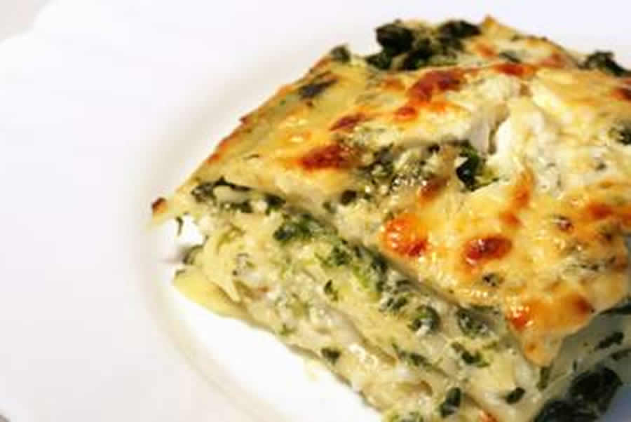 Mélanger avec les épinards cuits. Dans un plat à gratin, mettre une couche de sauce aux épinards, une couche de lasagnes et renouveler deux fois.