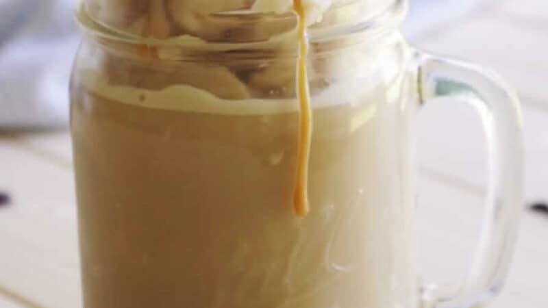 Surmonter de chantilly pour plus de gourmandise et verser un peu du caramel liquide.