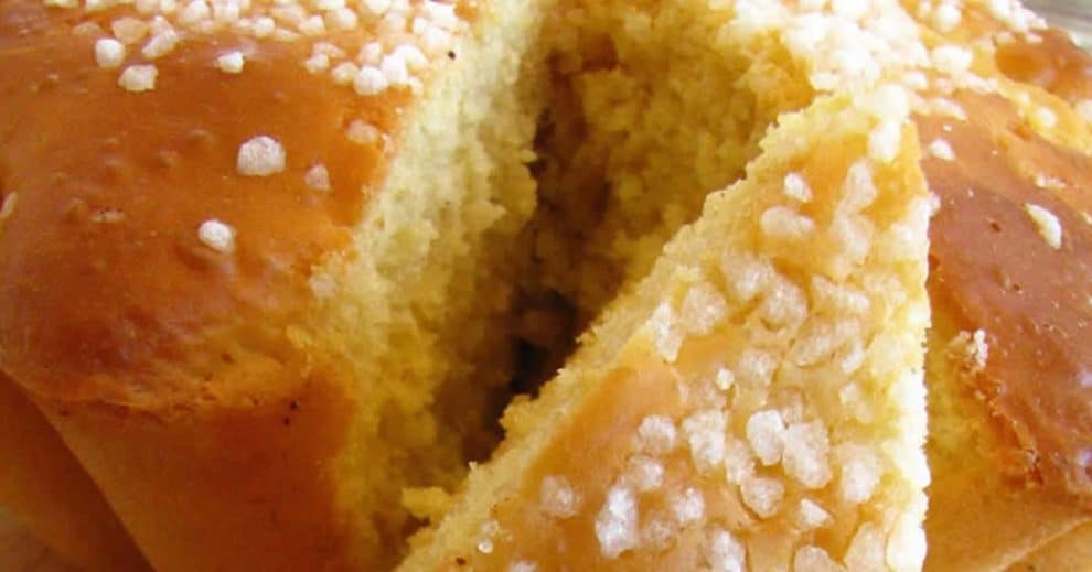 Enfin, éparpiller sur la pâte du sucre en gros grains et enfourner au four à une température de 150°C à chaleur tournante pendant 1 heure et 10 minutes à 1 heure et 15 minutes.
