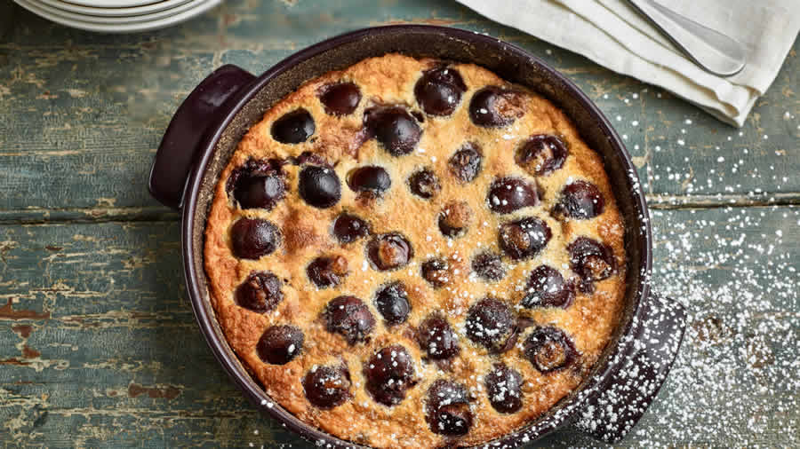 Laver les cerises, équeuter-les, laisser-les sécher pour qu’elles ne retiennent plus d’eau qui allongerait la pâte.