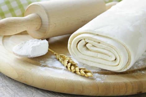 7. Mettre une feuille de papier sulfurisé dans le moule. Placer le pâton dans le moule.