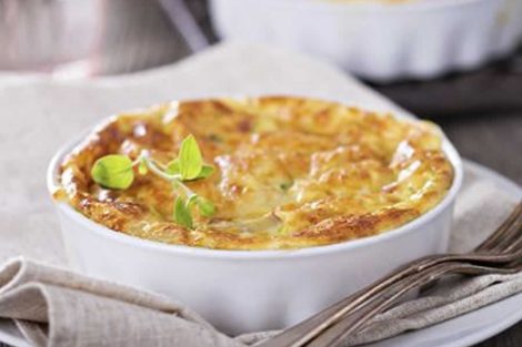 Mettre la préparation de cabillaud dans un plat à gratin puis recouvrir avec la purée de pommes de terre.