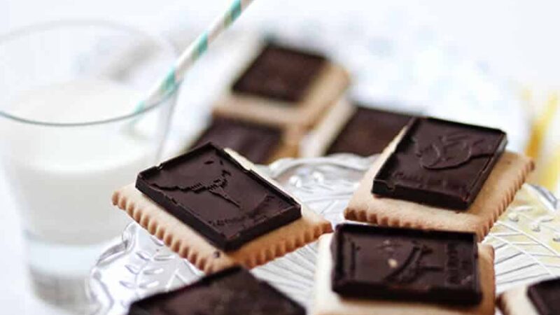 Ne pas jeter les lambeaux de chocolat restants, ils seront refondus et serviront à lier le biscuit à la plaque de chocolat.