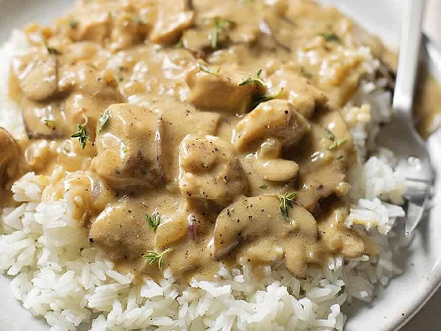 Poulet stroganoff au Thermomix. Je vous propose une délicieuse recette de Poulet stroganoff, facile et rapide à réaliser chez vous au thermomix. Vous pouvez accompagner cette recette avec du riz.
