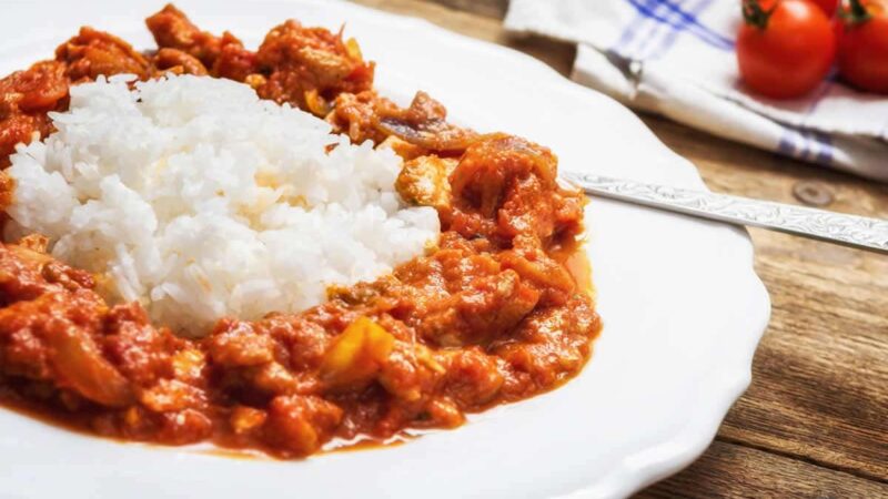 Servir votre plat Poulet Tikka Masala accompagné de la sauce et du riz basmati.