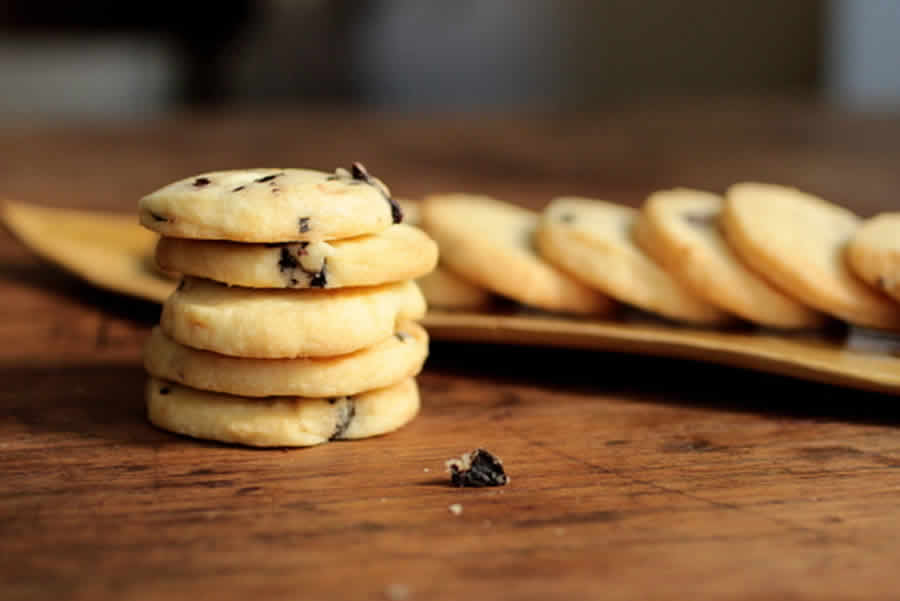 Préchauffer le four à 180°C. Sortir le boudin de pâte du frigo. Enlever le film et couper des rondelles de 0,5 cm d’épaisseur.