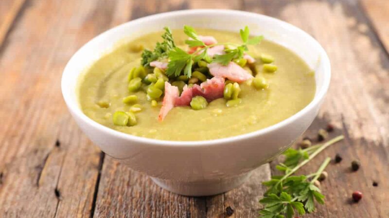 Soupe de pois cassés au lard au Thermomix. Découvrez cette délicieuse recette de soupe de pois cassés au lard, simple et facile à réaliser au Thermomix