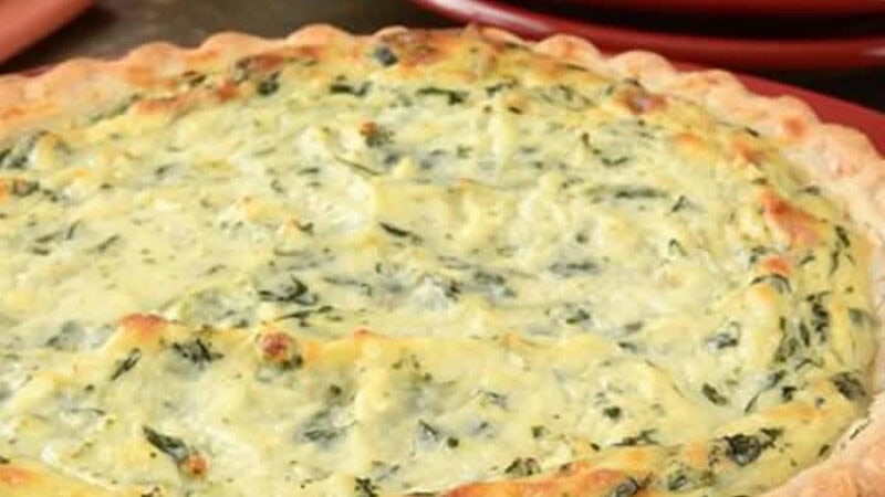 Étaler la pâte dans un moule à tarte beurré et verser l’appareil.